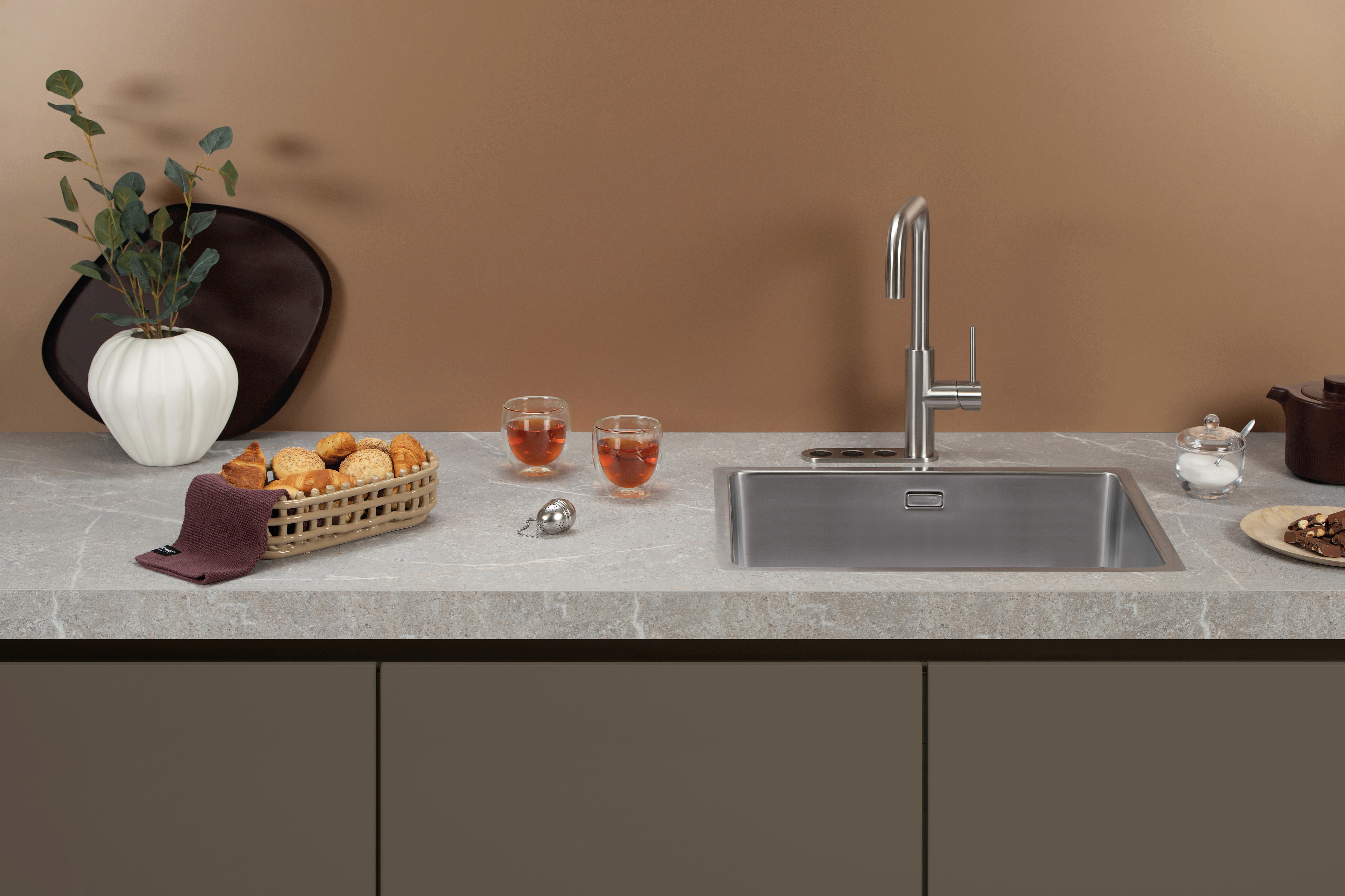 Evora Qstone är en kompositbänkskiva som återskapar naturstenens känsla – men med alla fördelar av modern teknik. Slitstark, icke-porös och motståndskraftig mot syror, repor och värme. Med över 40 färger och mönster kan du skapa en bänkskiva som kombinerar tidlös design med modern funktion.