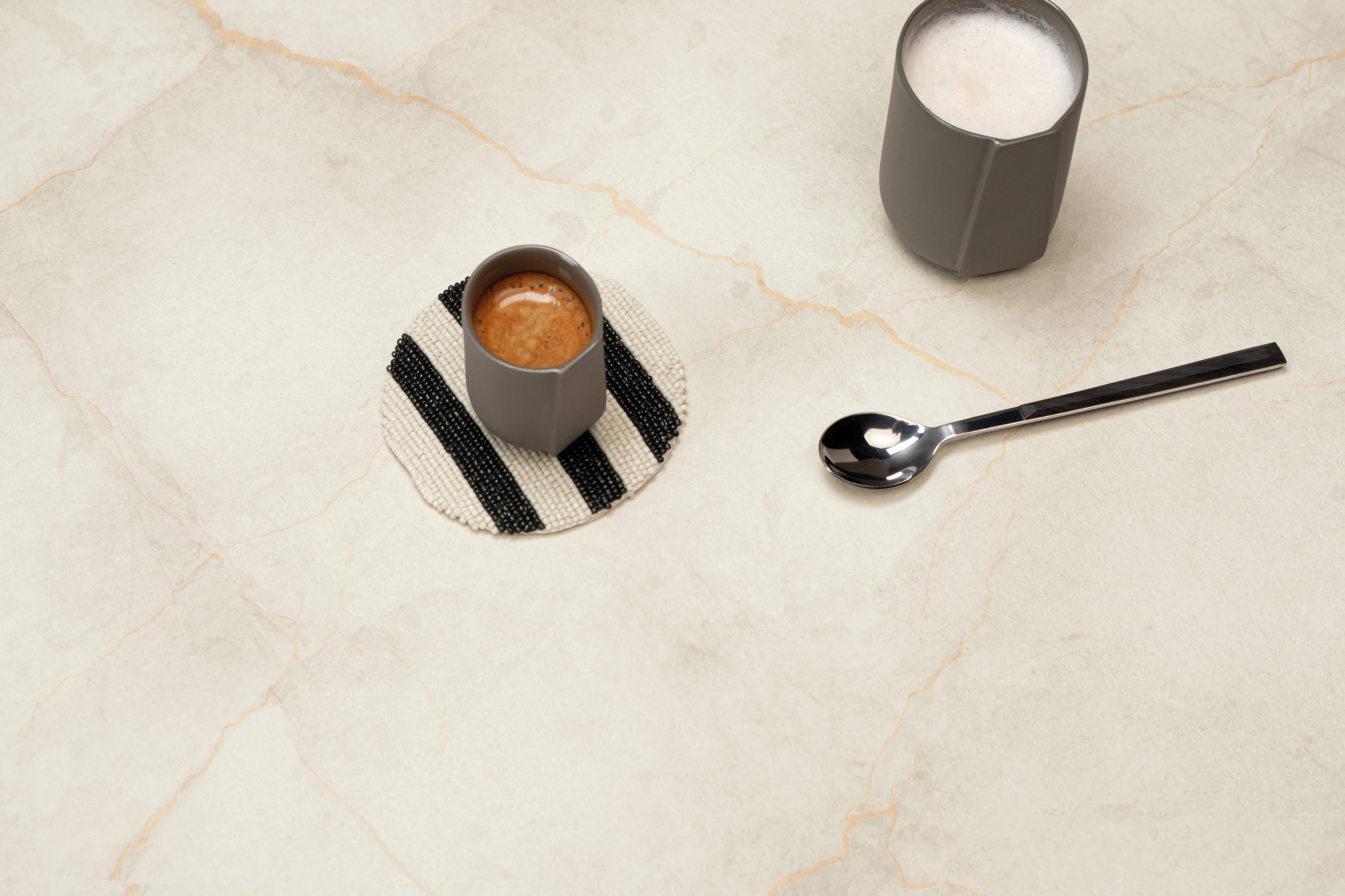 En kompositbänkskiva som återskapar naturstenens känsla med modern teknik. Ger samma exklusiva uttryck men med fler praktiska och moderna fördelar.